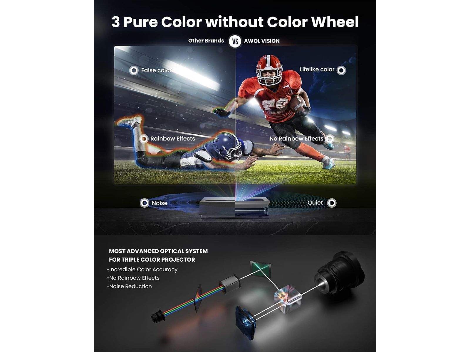AWOL Vision LTV-3000 Pro — один из лучших RGB triple-laser проекторов в своём классе: кинотеатральные цвета, иммерсивный звук и универсальность для фильмов, игр и 3D.