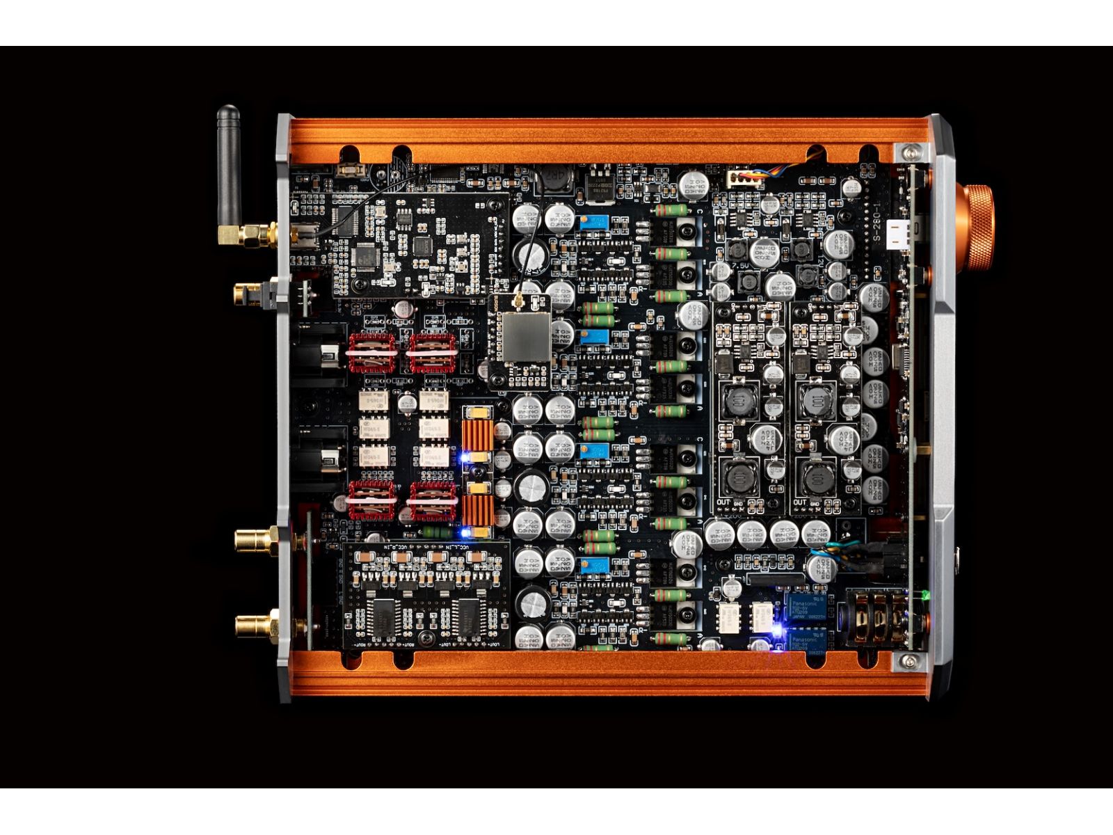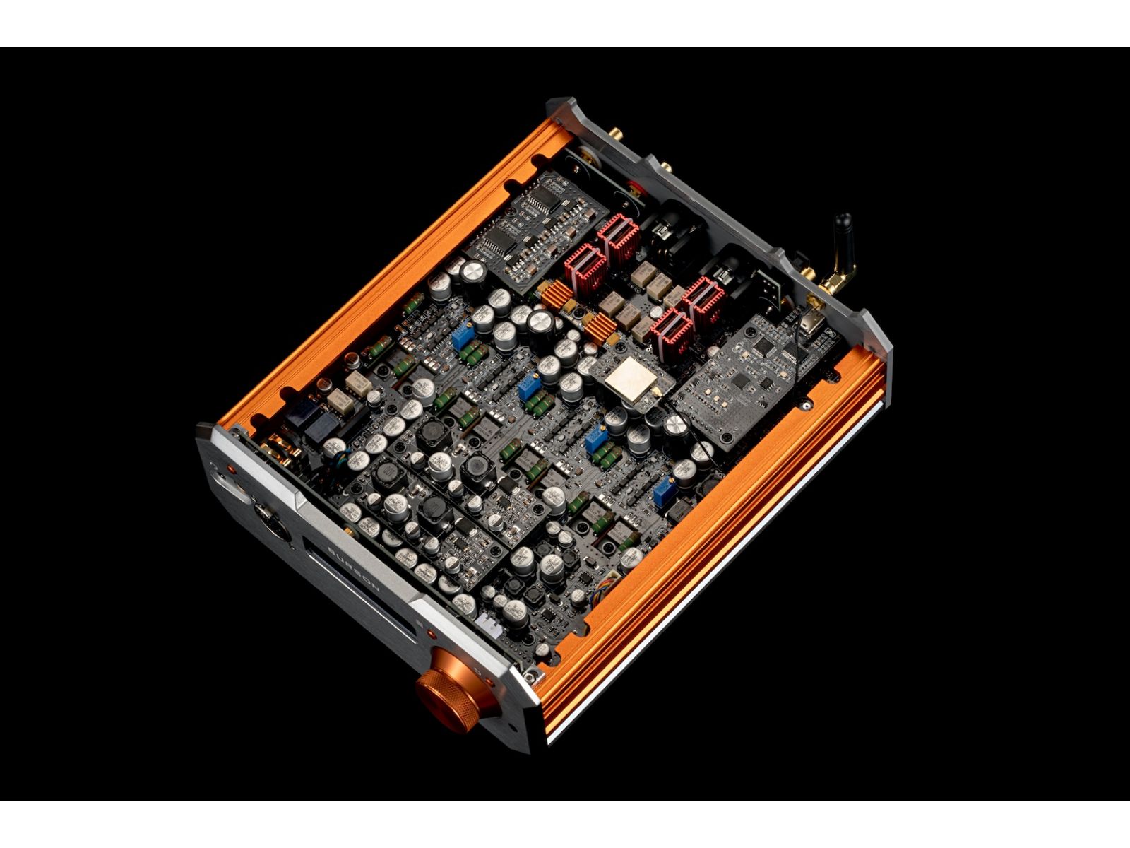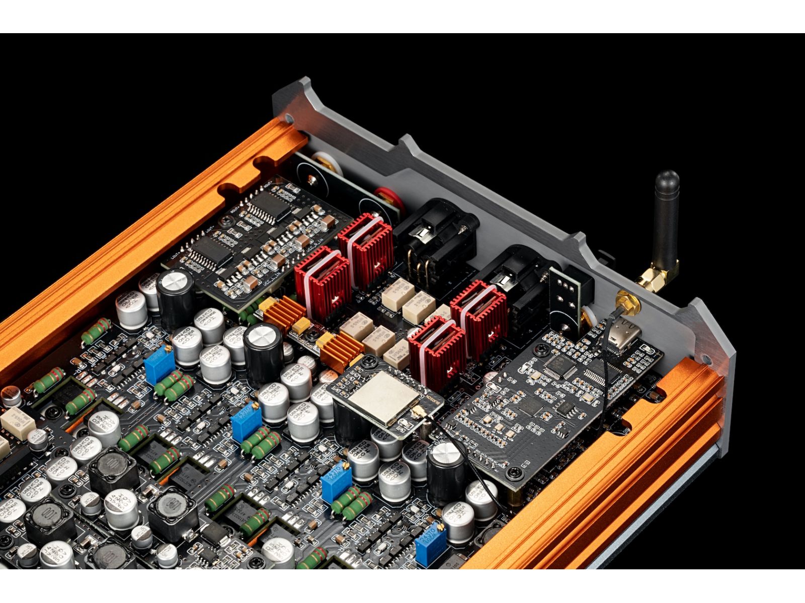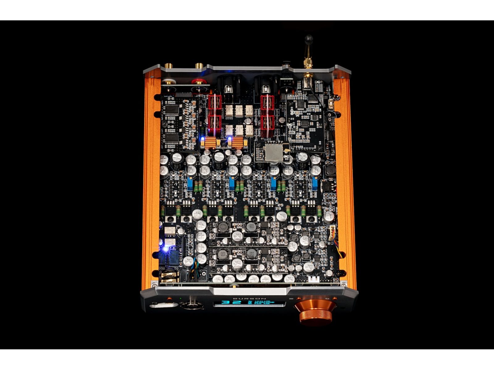 В сердце устройства — двойные чипы ESS9039PRO DAC, обеспечивающие сверхвысокое разрешение, минимальные искажения и детальность. Полностью дискретный аналоговый тракт с фирменными модулями Silent Power (двойные для сверхчистого питания) и MCPS (четыре модуля) гарантирует чёрный фон и стабильность. Усилитель класса A выдает до 8 Вт на канал в балансном режиме, легко справляясь с любыми наушниками — от чувствительных IEM до требовательных планарных моделей. Поддержка Roon Ready, Bluetooth 5.0 с Qualcomm CSR8675 (LDAC, aptX HD) и XMOS USB-C вход добавляют удобства стриминга.