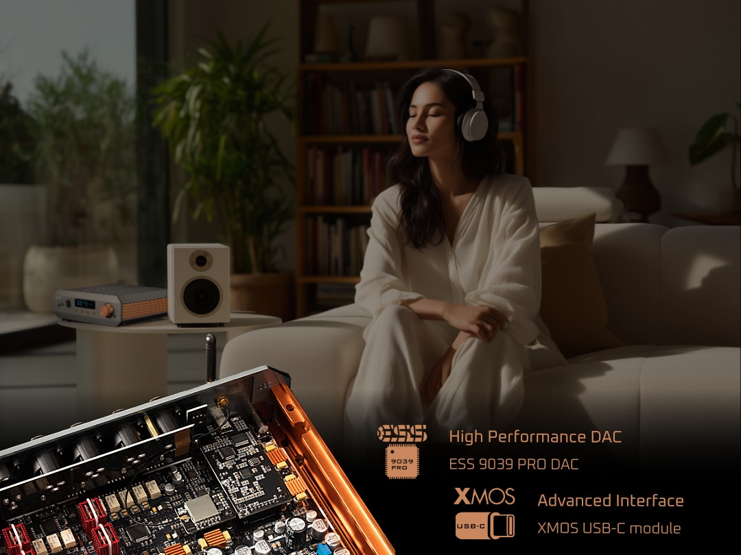 Благодаря усовершенствованному ЦАП-чипу ESS9039PRO, полностью дискретным сигнальным трактам и мощности 10 Вт в режиме класса А с холостым ходом 100 Вт, он обеспечивает потрясающе мощное и изысканное звучание любых наушников.