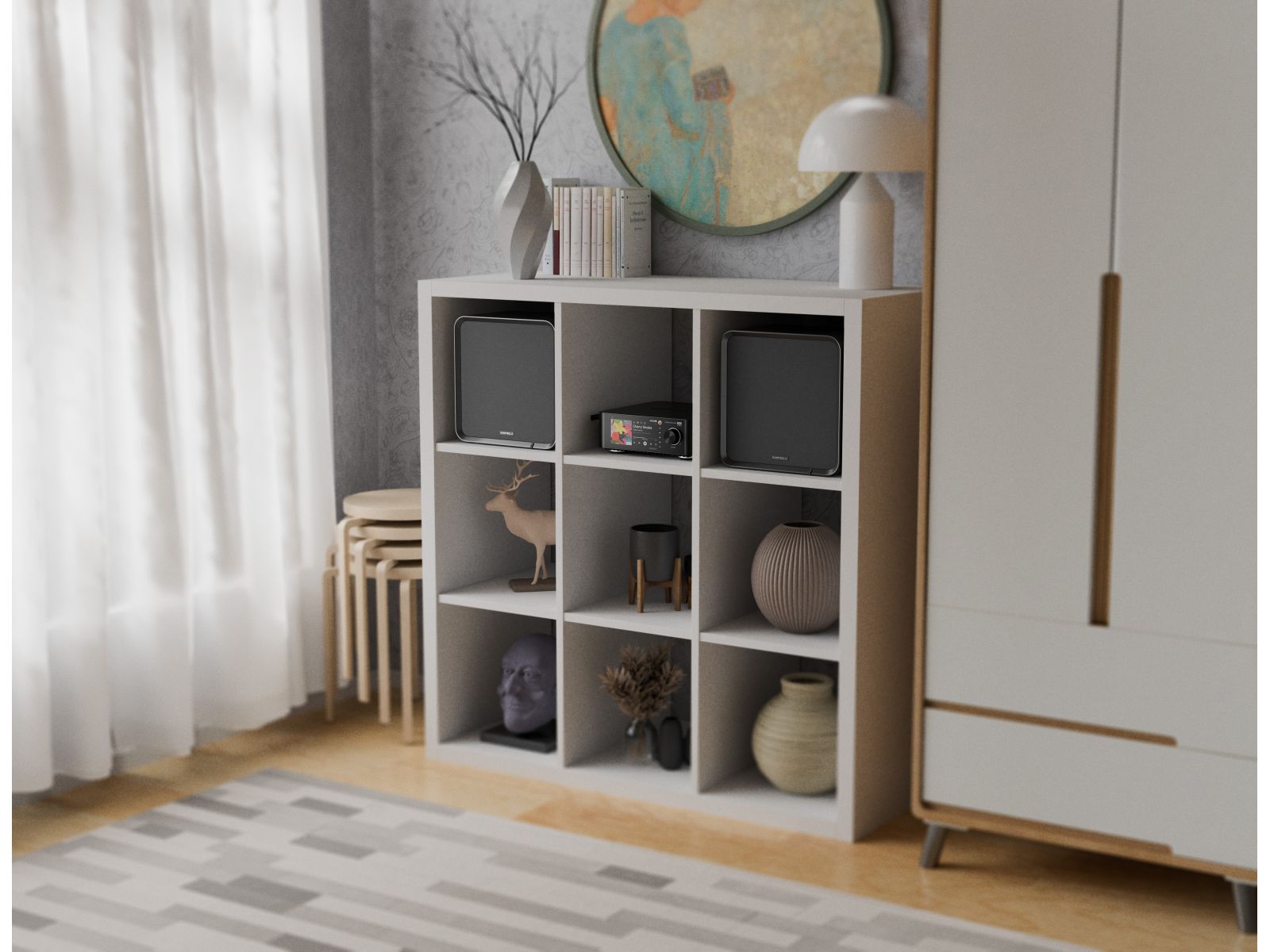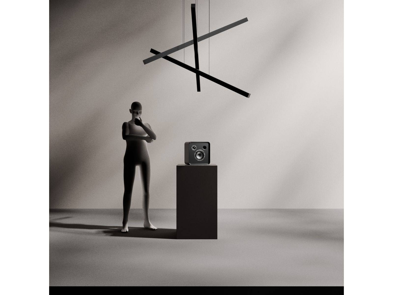 Корпус из высококачественного алюминия или MDF с премиум-отделкой, минималистичный дизайн с акцентом на акустическую нейтральность и эстетику.