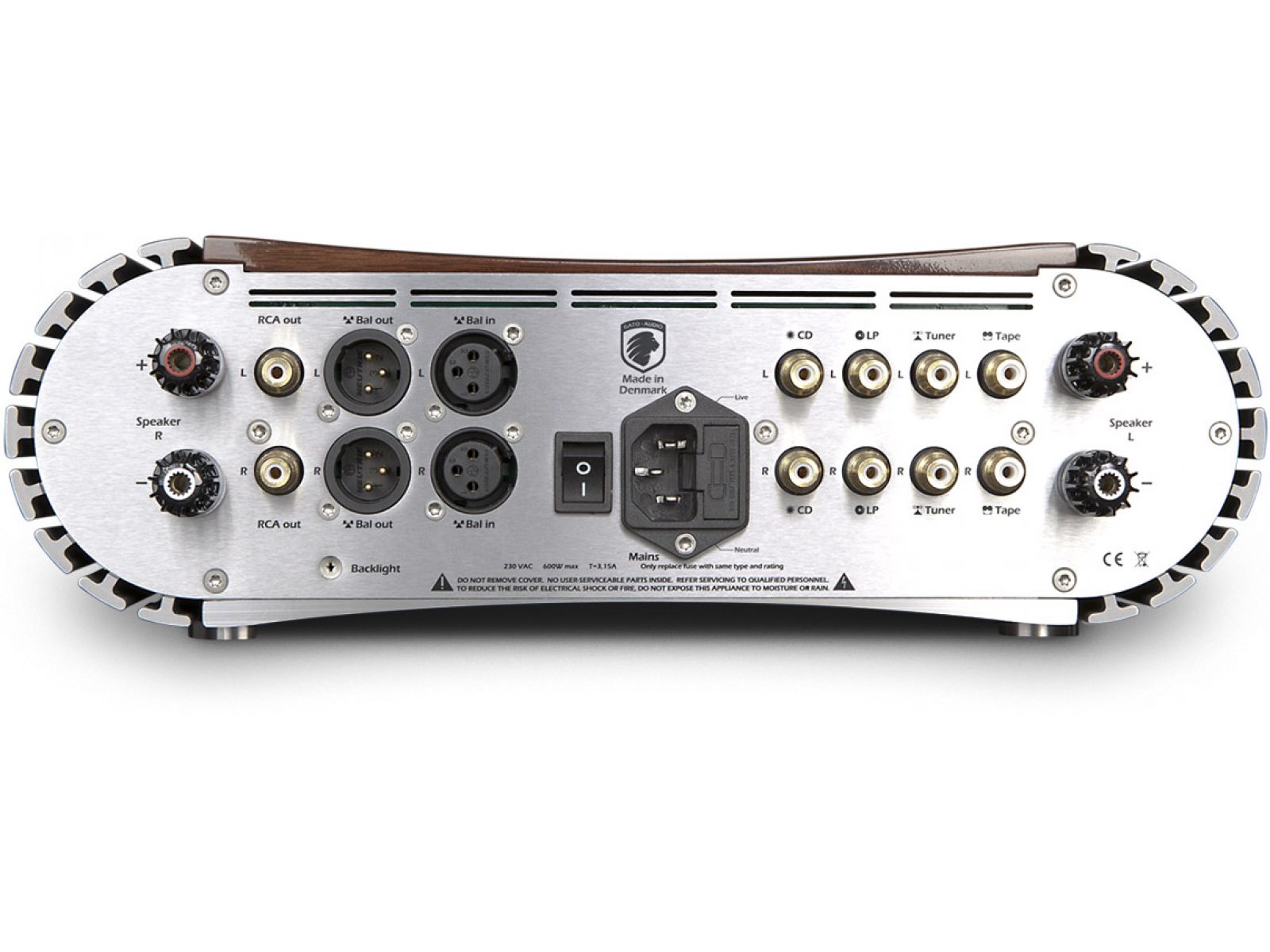 Корпус из немагнитного фрезерованного алюминия с характерными округлыми формами доступен в вариантах high gloss black, white или натуральный шпон ореха. По индивидуальному заказу Gato Audio изготовит верхнюю крышку любого цвета — для идеального сочетания с интерьером, мебелью или даже автомобилем.