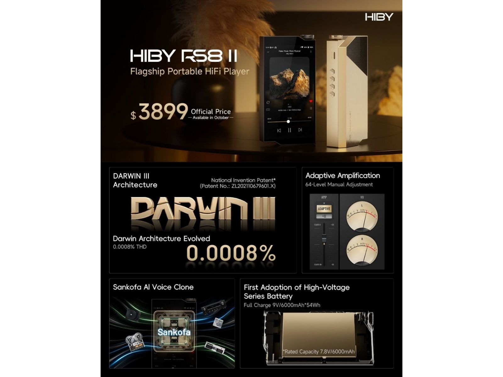 Компания HiBy представила в Пекине RS8 II, также известный как HiBy RS8 2-го поколения. Новый флагманский портативный цифровой аудиоплеер (DAP) оснащен процессором класса Snapdragon, совершенно новой аудиоархитектурой DARWIN III, системой адаптивного усиления и технологией искусственного интеллекта Sankofa Tone Cloning. Благодаря этим инновациям RS8 II задает новые стандарты портативного Hi-Fi.