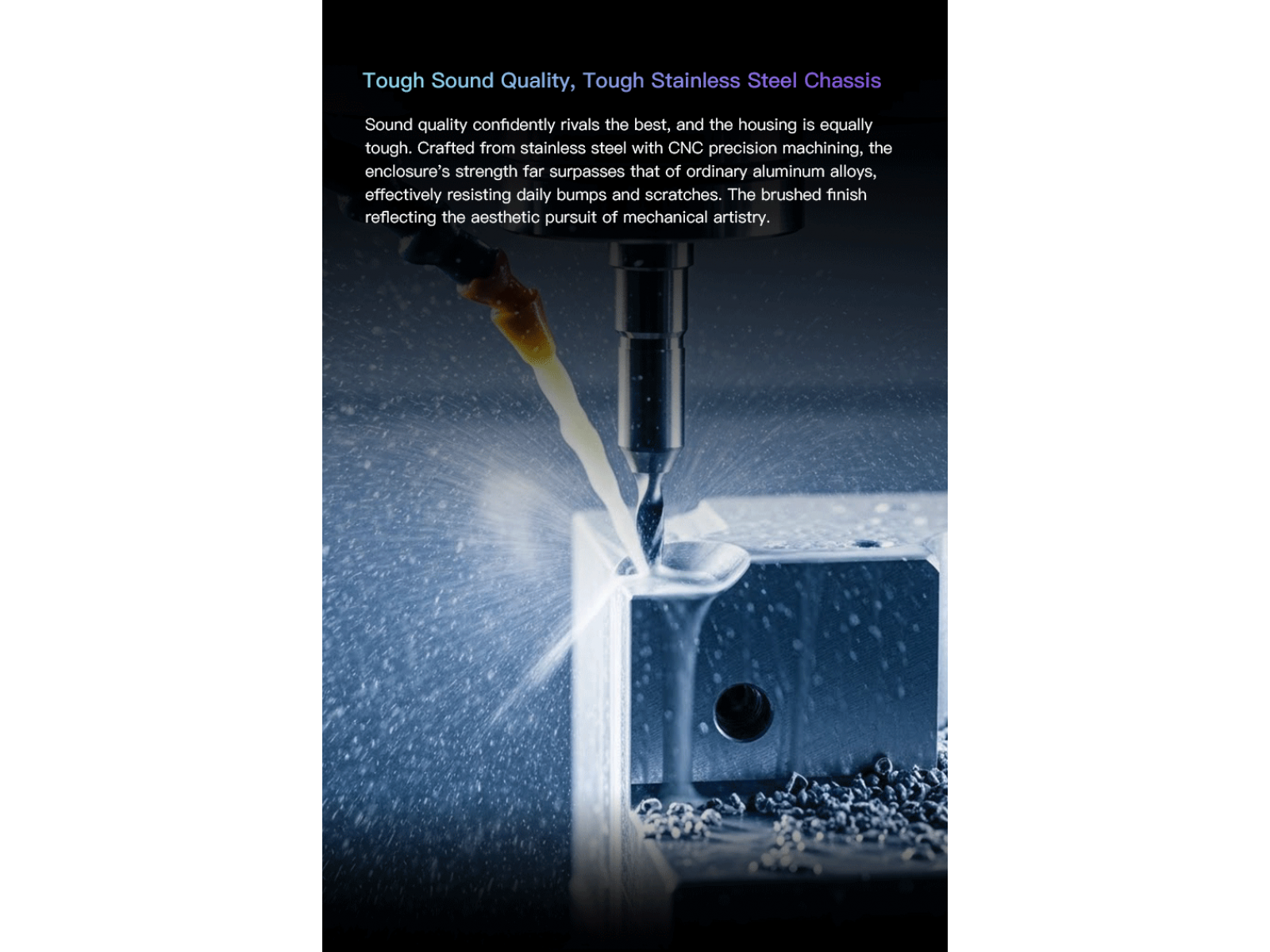 Звучание — прозрачное, натуральное и приятное: широкая сцена, отличная детализация, естественная тональность и чистый фон благодаря зрелой настройке iBasso. Корпус из нержавеющей стали — прочный, премиальный и компактный.
