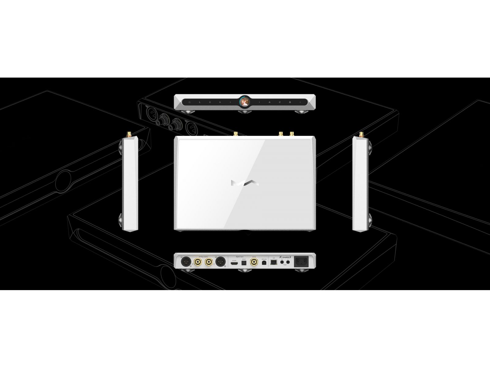 Matrix Audio X-SABRE 3 обладает новым ЖК-дисплеем с высоким разрешением, позволяющим получать кристально чистую информацию о текущем рабочем состоянии устройства. Во время потоковой передачи будут отображаться обложки альбомов в соответствии с текущими технологическими требованиями с точки зрения пользователя. Современный шаг вперед, заслуживающий звания нового поколения в линейке X-SABER. Секрет возможностей аккуратно спрятан под крышкой из закаленного стекла. Набор двухдиапазонных антенн Wi-Fi 2.4 ГГц и 5 ГГц скрыт от ваших глаз, чтобы сохранить элегантные очертания X-SABER 3. В областях со слабым сетевым покрытием доступен проводной вариант Gigabit Ethernet для поддержания стабильности соединения.