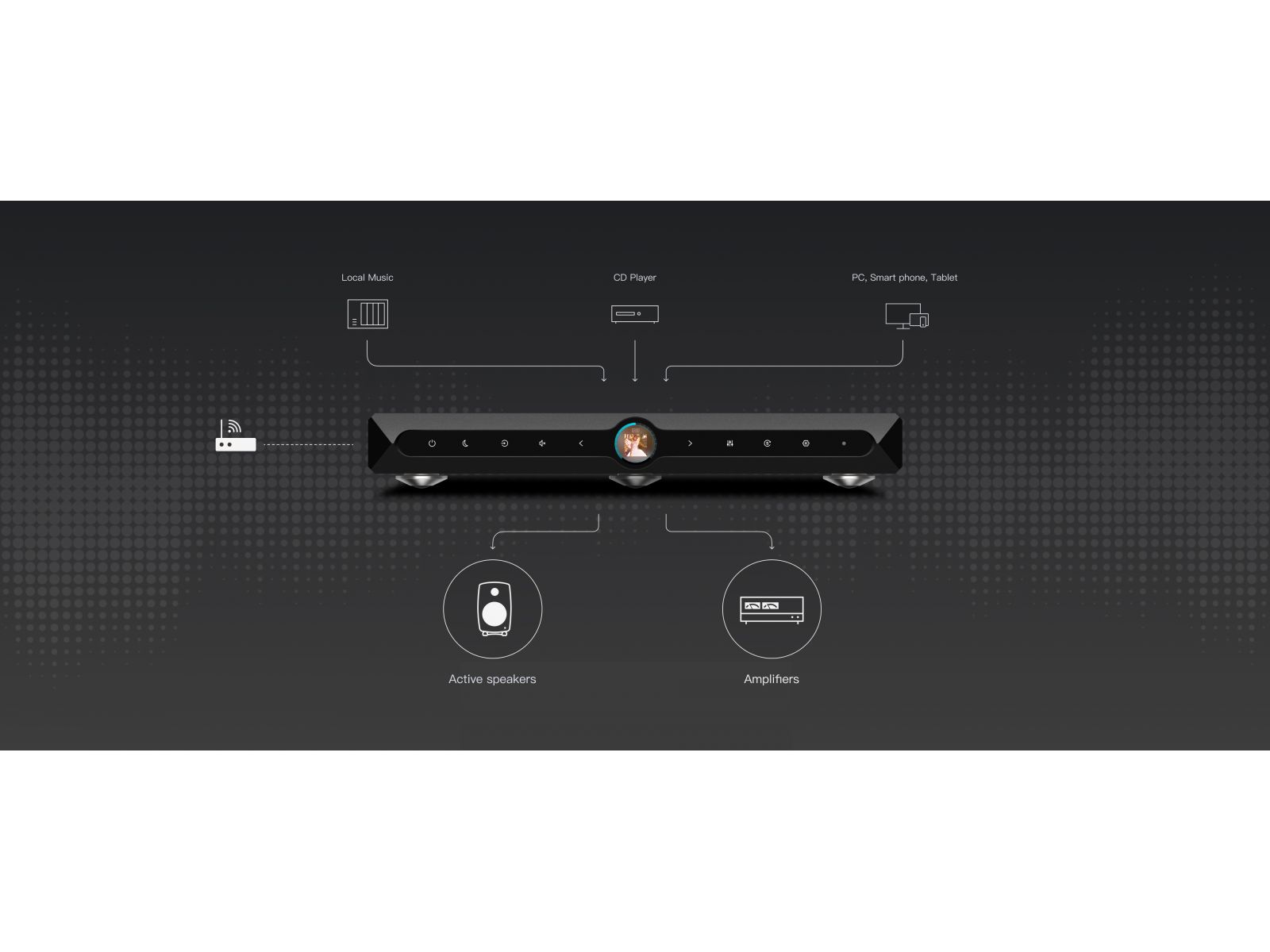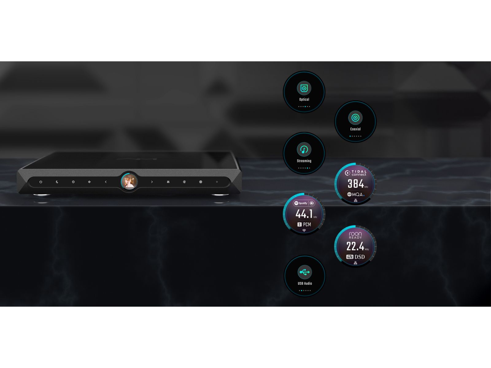 - сертифицирован по Roon Ready, поддерживает UPnP и DLNA, включает в себя Tidal Connect и Spotify Connect, поддерживается Airplay;