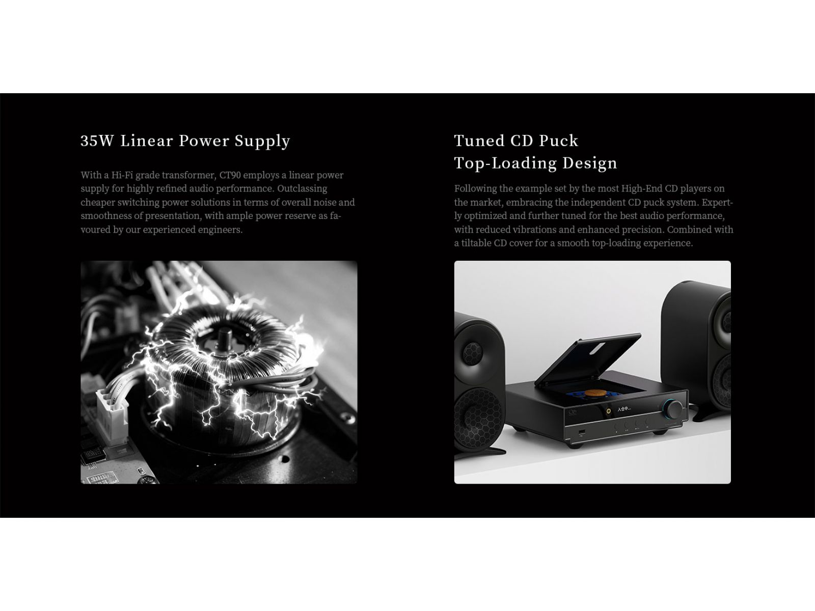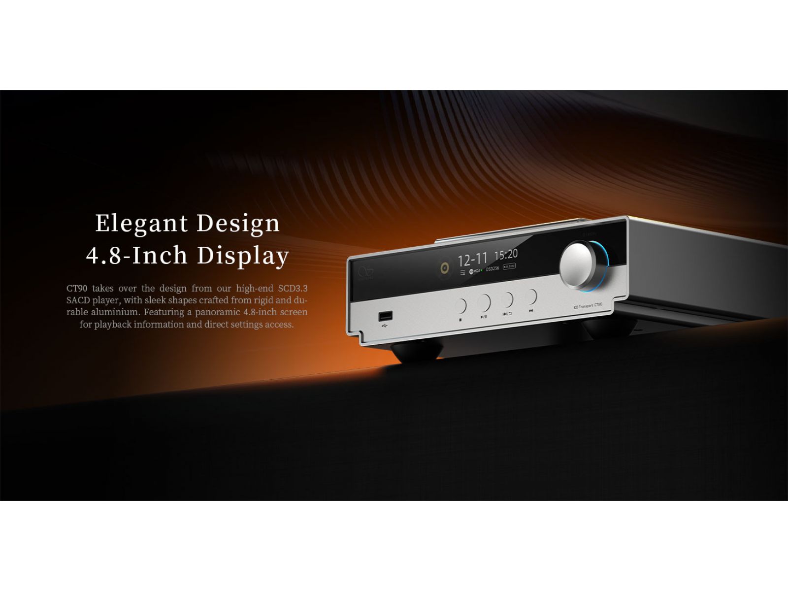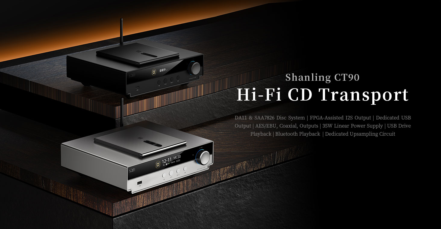 Shanling CT90 – новый CD-транспорт для стационарных аудиосистем, ориентированный на работу с внешними ЦАП и активной акустикой. Модель продолжает линейку фирменных CD-транспортов Shanling и использует верхнюю загрузку диска с отдельным прижимом и наклоняемой крышкой. Конструкция основана на сервоприводе SAA7824 и механизме DA11, рассчитанных на стабильное считывание CD, CD-R и CD-RW, включая поддержку MQA-CD. Внешне устройство выполнено в едином стиле с компонентами Shanling Hi-Fi серии SCD, с алюминиевым корпусом и фронтальным дисплеем диагональю 4.8 дюйма.