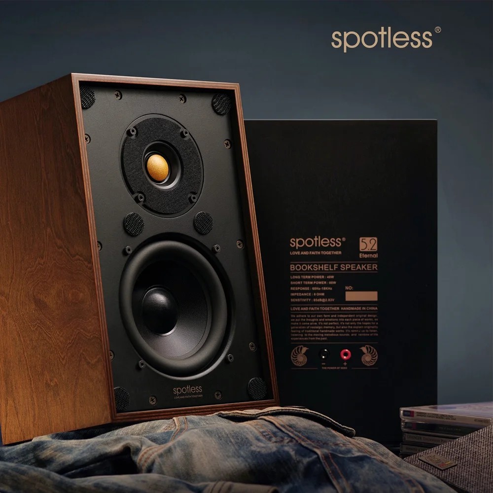 Spotless Audio Eternal 5.2 — полочные пассивные колонки среднего размера из флагманской серии Eternal от бренда Spotless Audio. Разработаны для тех, кто ищет более масштабный, объёмный и динамичный звук по сравнению с младшими моделями 4.2 и 4.6, сохраняя при этом фирменную тёплую, эмоциональную и естественную подачу.