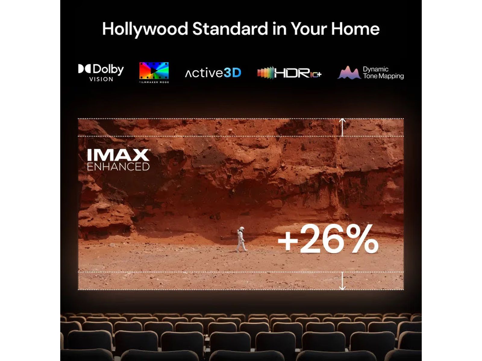 В основе — RGB triple-laser, обеспечивающий яркость 3000 ISO люмен, охват 110% Rec.2020, контрастность 15 000:1 (с технологией Enhanced Black Level для глубокого чёрного) и поддержку Dolby Vision, HDR10+, IMAX Enhanced, Filmmaker Mode и Active 3D. Изображение живое, с естественными цветами, отличной детализацией в HDR.